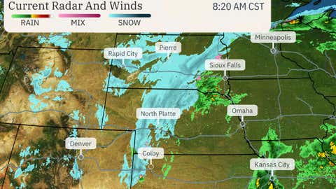 Within the past hour or so, rain has quickly changed over to wet snow from eastern Colorado and far northwestern Kansas to parts of South Dakota.